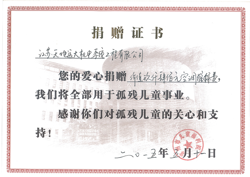 2015年5月11日,公司向常州市兒童福利院捐贈價值玖仟肆佰元的空調(diào)維保費(fèi)用于孤殘兒童事業(yè),為孩子們的成長提供了愛心幫助。來源:綜合部